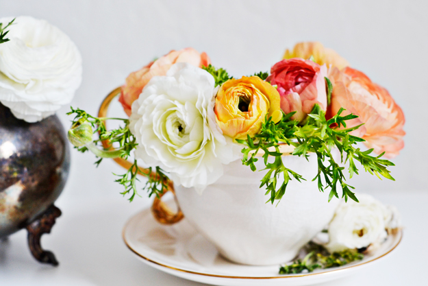 I think ranunculus might be my favorite flower. I find that I use it the most in my arrangements and I’m so excited when they become available in February (in California at least). I love scale of flower. It makes the perfect little bouquet, perfect for teacups or it can be mixed in with larger blooms.