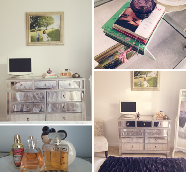 Custom artwork always looks great! My dad painted this rendition of an engagement photo by Sun & Sparrow Photography (check out to see our photo-shoot). I fell in love with mirrored furniture this year. It perfectly adds a touch of glamour to any room.