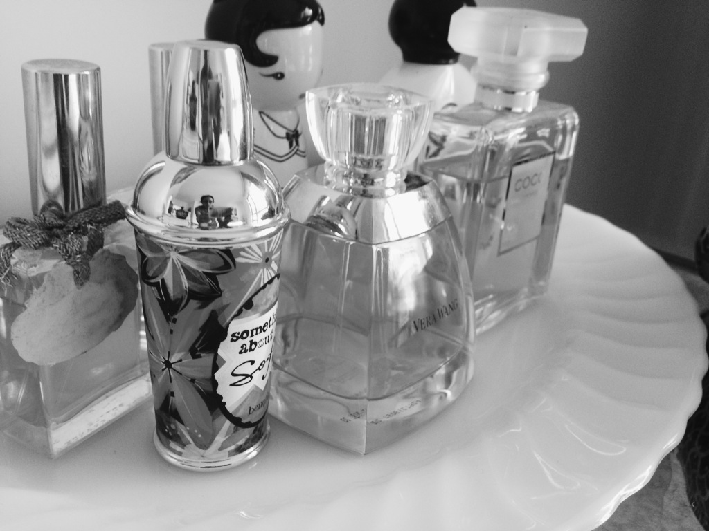 I have quite the little perfume collection. Placing little bottles or other vanity items on a nice tray or dish is a great way to clean up clutter. It also brings focus to the items you value most!
