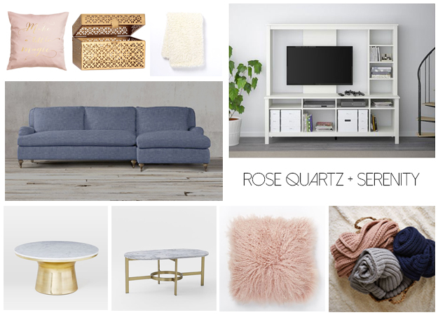 Hi everyone! In my last few posts, I’ve shared a some of our decor progress for our new Long Beach, CA home. We started off the year by tidying up, getting a new sectional sofa and a new media center. I still have a long list of updates (especially the dining room), but these few changes have made our home more comfortable and stylish. I’m sourcing different accents to add to our space. A lot of what I love seems to be available at West Elm, but also more affordable options at Target and H&M. Yes, in case you didn’t know, H&M has home decor! Coincidentally the two Pantone 2016 colors of the year are the exact shades I picked out last year. Our dining room, kitchen and bath were painted in a Parisian blue, which is very close to the this year’s “Serenity” blue. I started purchasing accents like our Lulu & Georgia dining room rug and this pink martini table in “Rose Quartz” last year as well. When the Pantone 2016 colors were announced I jumped for joy!