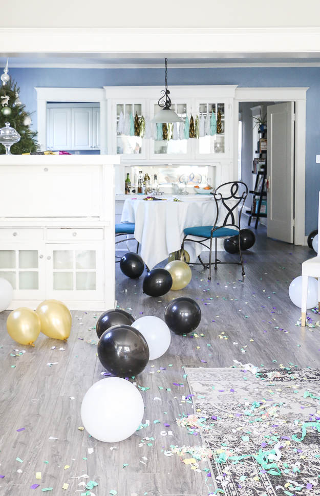 Speaking of parties, we did have a few friends over for New Year’s. We had a great time drinking champagne and shooting off confetti poppers. What I really loved was the mess afterwards. Call me crazy but our apartment looked so pretty with mounds of confetti and balloons everywhere. I still haven’t popped all the balloons. They currently reside in my home office :)