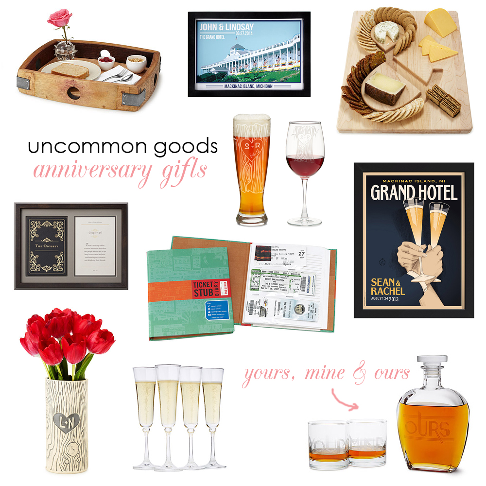 Hi everyone! Hopefully you’re following along on Instagram and Snapchat and saw the big announcement. I’m opening a store! That is THE reason for the major slow down on the blog. Pretty soon the website will get a little makeover to accommodate the new extension of Planning Pretty. More details on the shop later. Curating products is something I really enjoy and that’s why today I’m sharing a few of my favorite products from Uncommon Goods! The summer is full of wedding anniversaries, including my own this August. Every year I try to find something very personal and creative to give my husband. Sometimes we agree on a joint gift that we can both enjoy. I found a few great ideas for our fourth anniversary this year. They double as awesome wedding gifts too, just in case you have any summer weddings to attend. Here’s the full list of my favorites from top row to bottom: