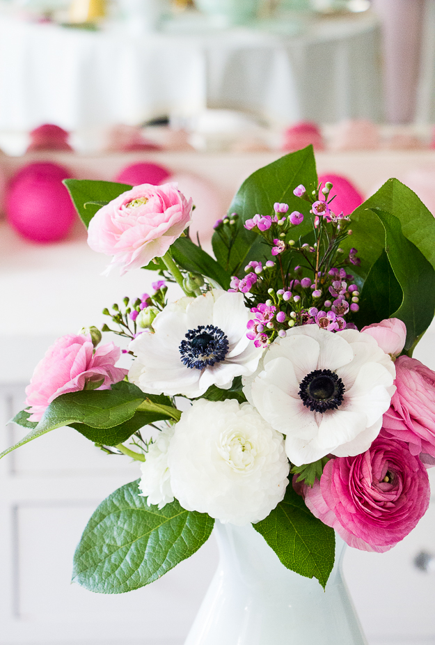 Cheers to Sunday! I hope everyone is spending the day relaxing and resting. Today’s Sunday Table series is a photoshoot I’ve wanted to do for a while. I love tea parties. My birthday was just a couple weeks ago. Even though I turned 28, the idea of a whimsical birthday tea is still my idea of a perfect party. I had so much fun styling this table today with props from Oh Joy for Target, my wedding tea set and beautiful flowers from my local florist. This ranunculus and anemone flower arrangement only took 15 minutes complete!
