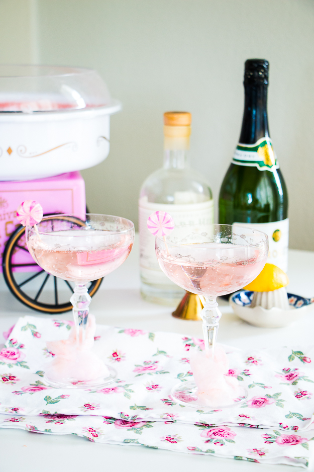 My newest cocktail recipe is now available on Better Homes and Gardens Delish Dish blog. I recently purchased a cotton candy maker from Amazon for just $30 and started experimenting as soon as it arrived. One of my first creations was this cocktail! A French 75 is actually my favorite cocktail to order when I go out. It is a simple drink of just gin, sugar, lemon juice and champagne. Instead of using just plain sugar I substitute cotton candy for a more playful presentation. The cotton candy dissolves instantly leaving a beautiful pink color. This cocktail is perfect for weddings, showers or birthday parties as a specialty cocktail. This cocktail is very quick and easy to make. I created a recipe for an individual servings but you could also make a larger batch with a couple bottles of champagne. Check out the full recipe over on BHG and let me know what you think!