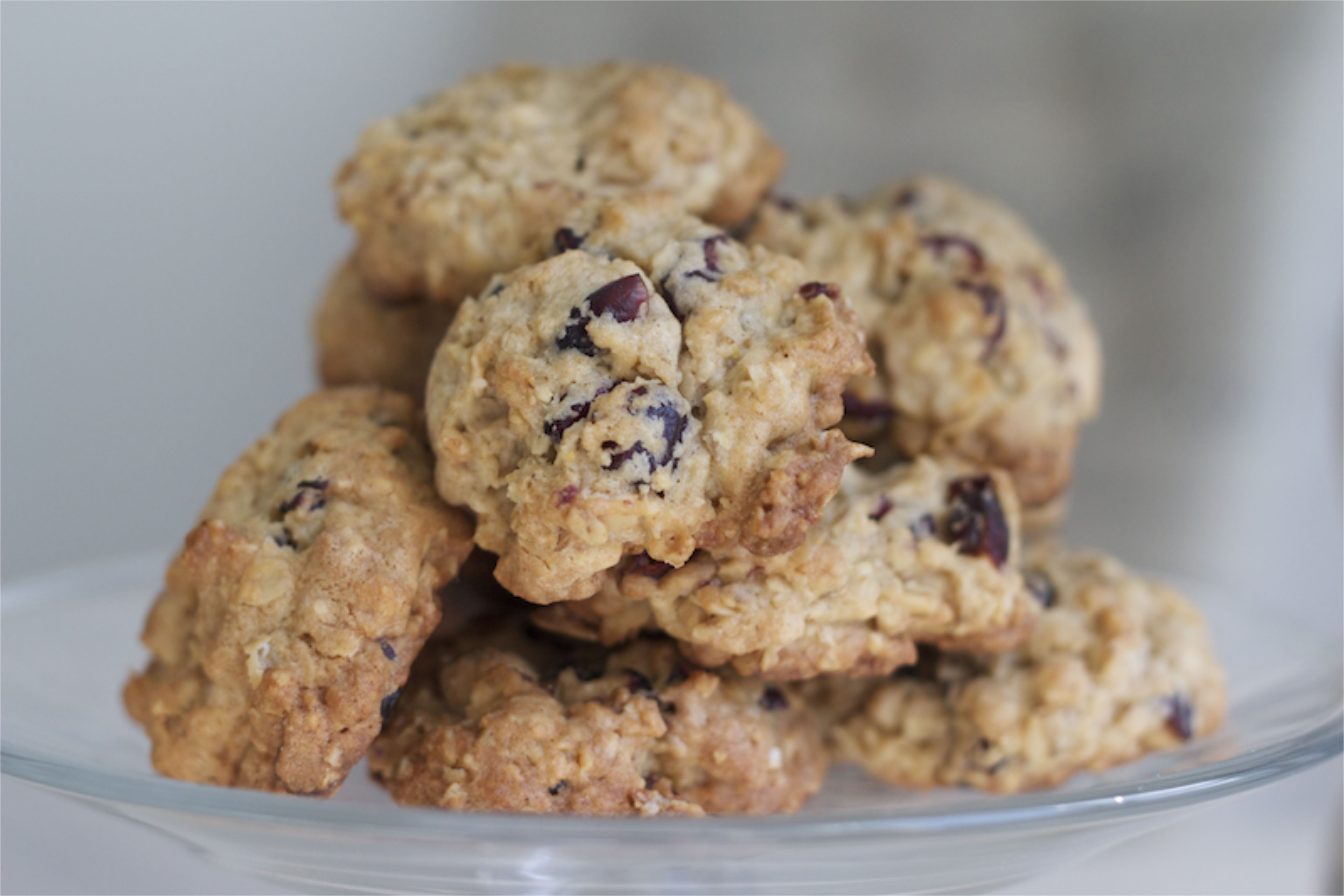 Lastly add in the oats, cranberries and then white chocolate chips. Scoop dough, mold into a ball and place on parchment covered sheet. Bake for approximately 9 minutes or until the brown along the edges. The longer you bake, the crisper the cookies.