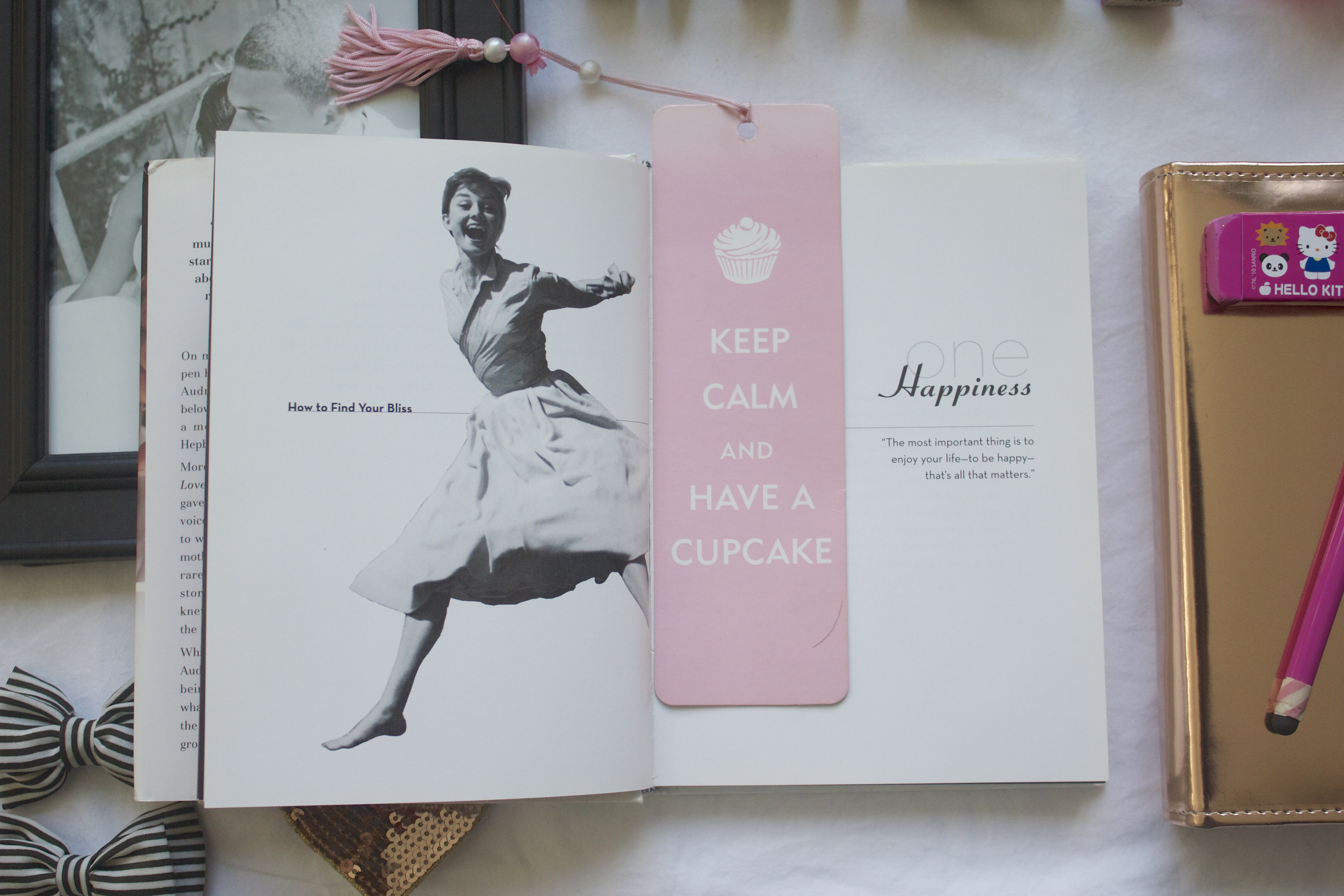 Today is my first time participating. So I wanted to keep it simple by creating visual representation of what makes me happy. I grabbed objects around my home, including one of my favorite books and laid them out for a happy photo shoot.